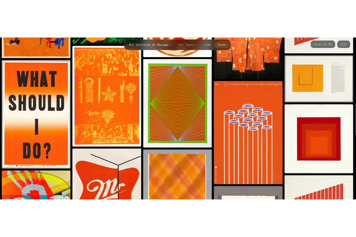 Multi-museum art explorer with infinite canvas, quizzes, and color/time filters