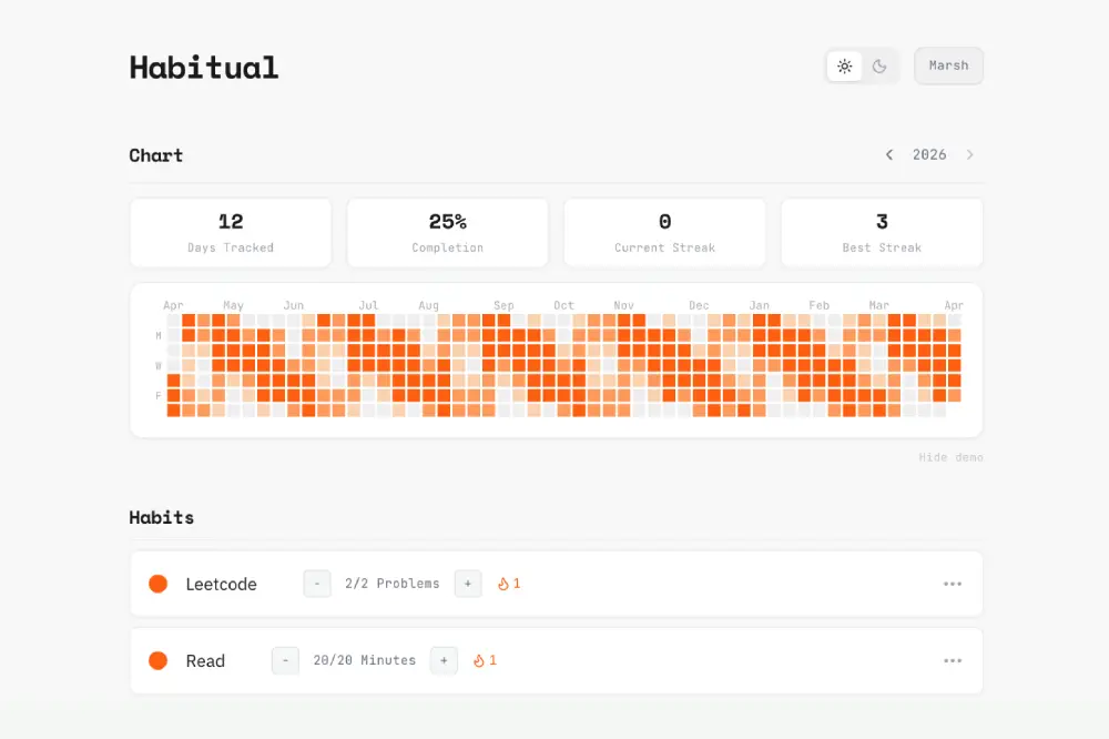 GitHub grid-style habit tracker