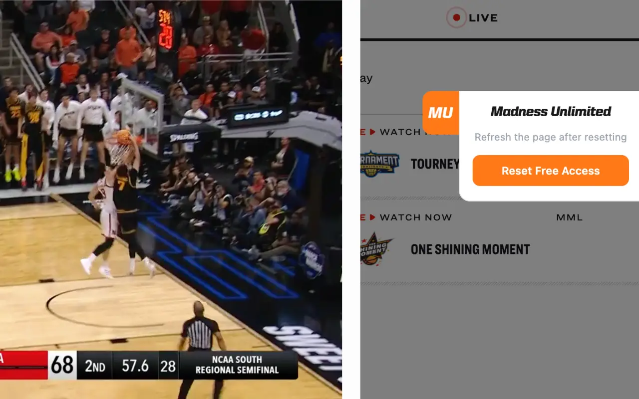 Chrome extension that resets the free preview on NCAA March Madness Live