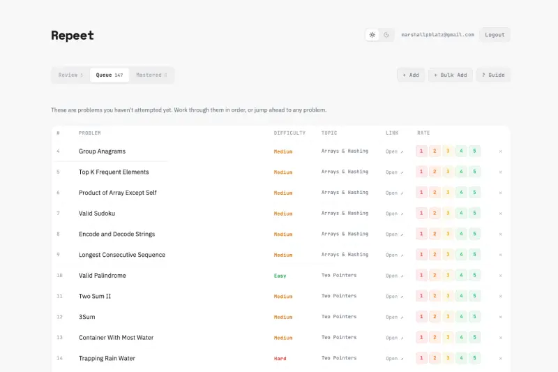 Spaced repetition manager for leetcode studying