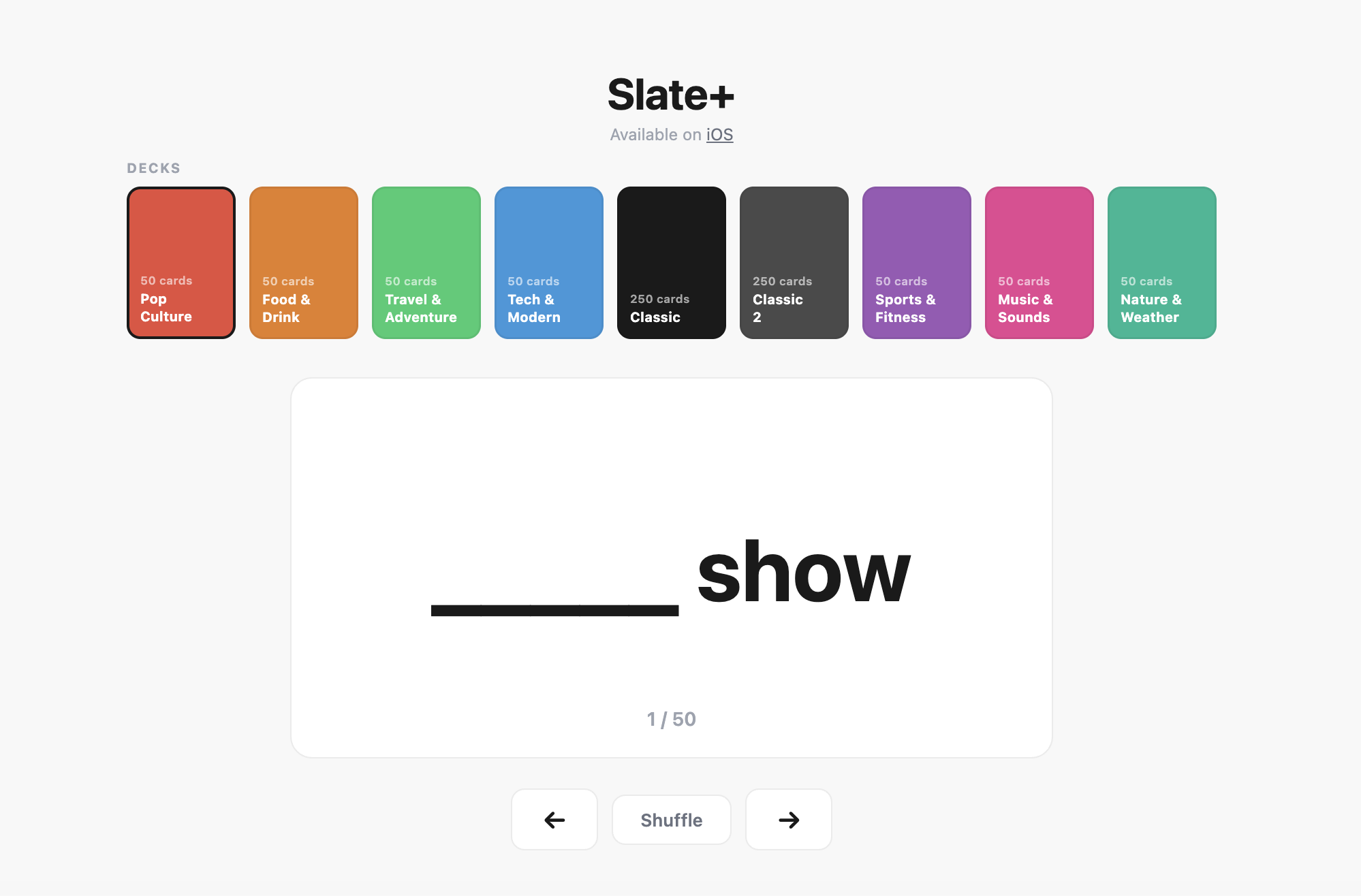 Mobile companion app for the board game Blank Slate